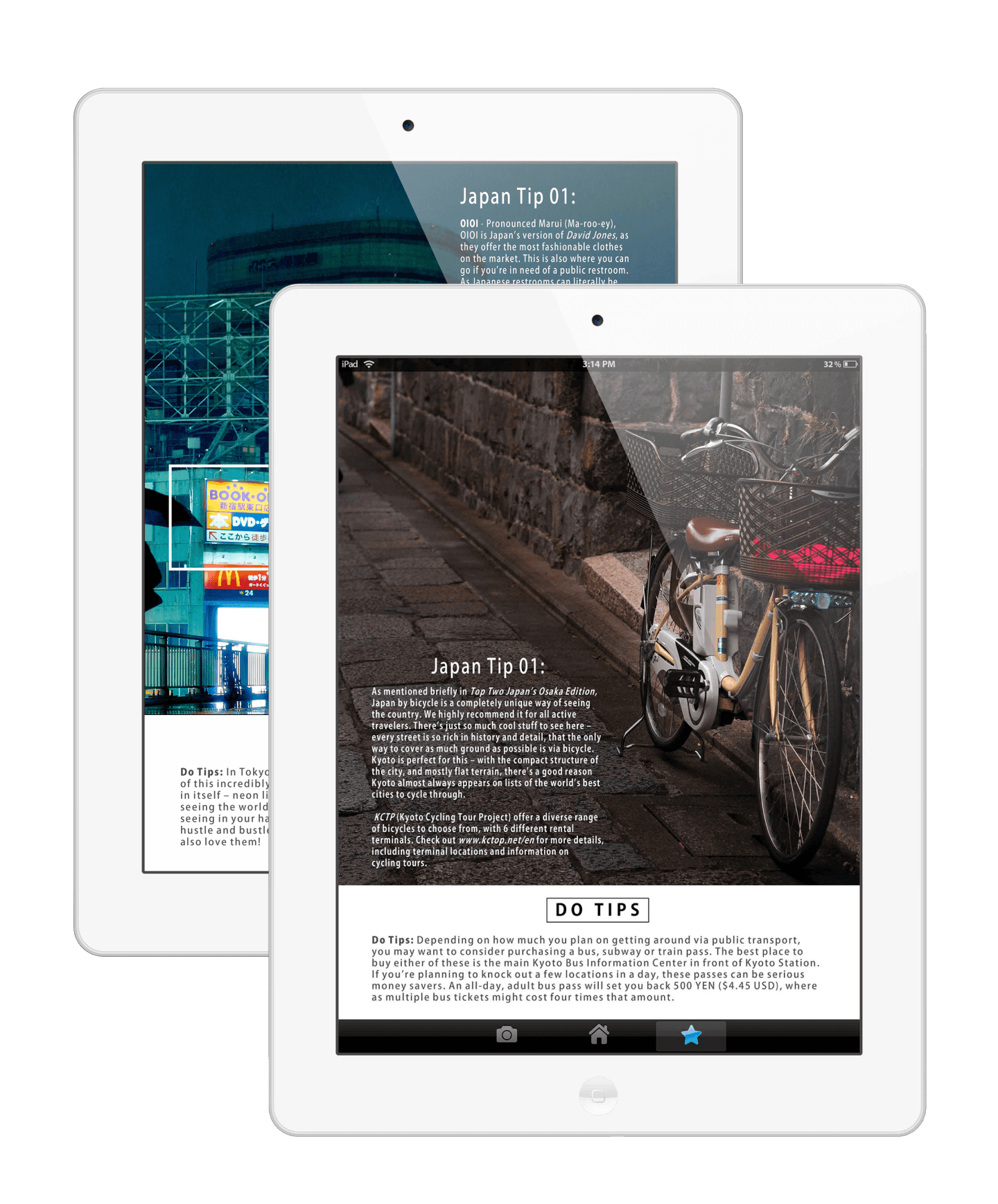Understanding the business: Top Two Japan is a three-part e-book series that compiles insiders knowledge of Tokyo, Osaka and Kyoto into an easy-to-consume e-book format. It was written by a variety of creators and Japan-experts who passionately poured their knowledge into the series.