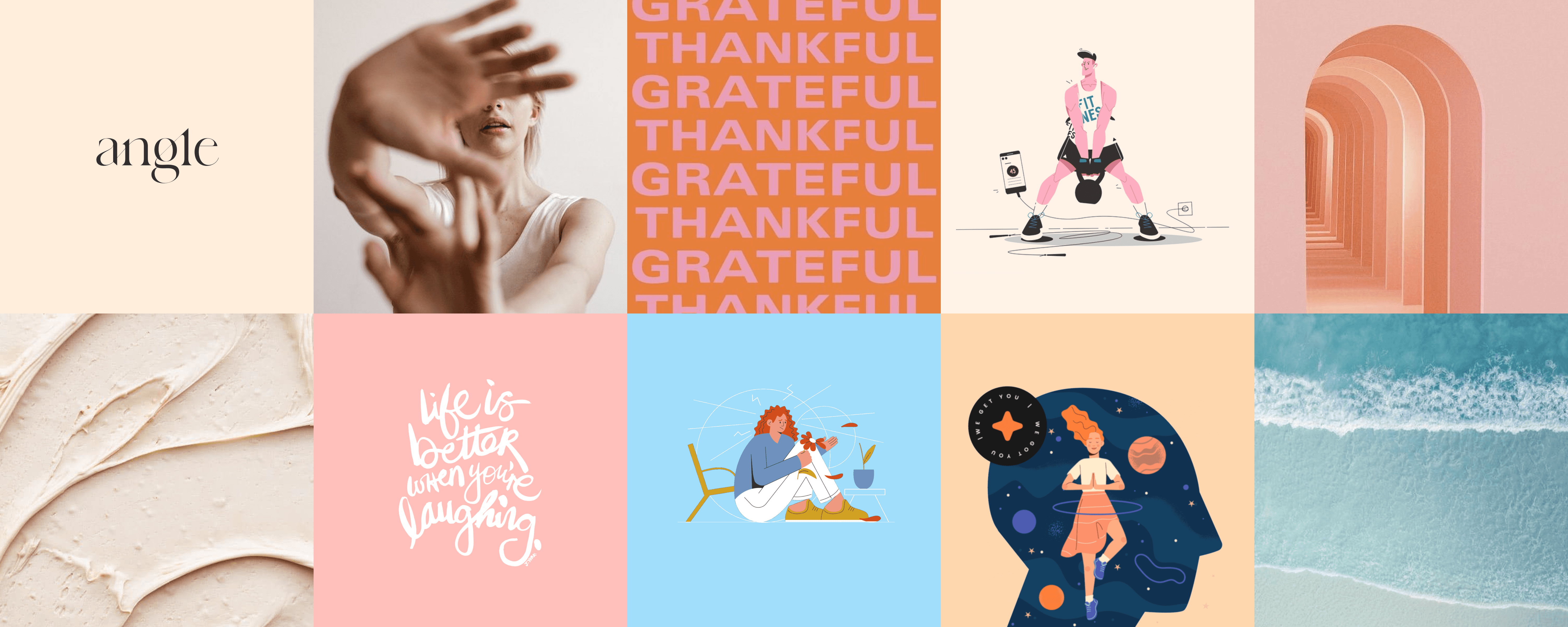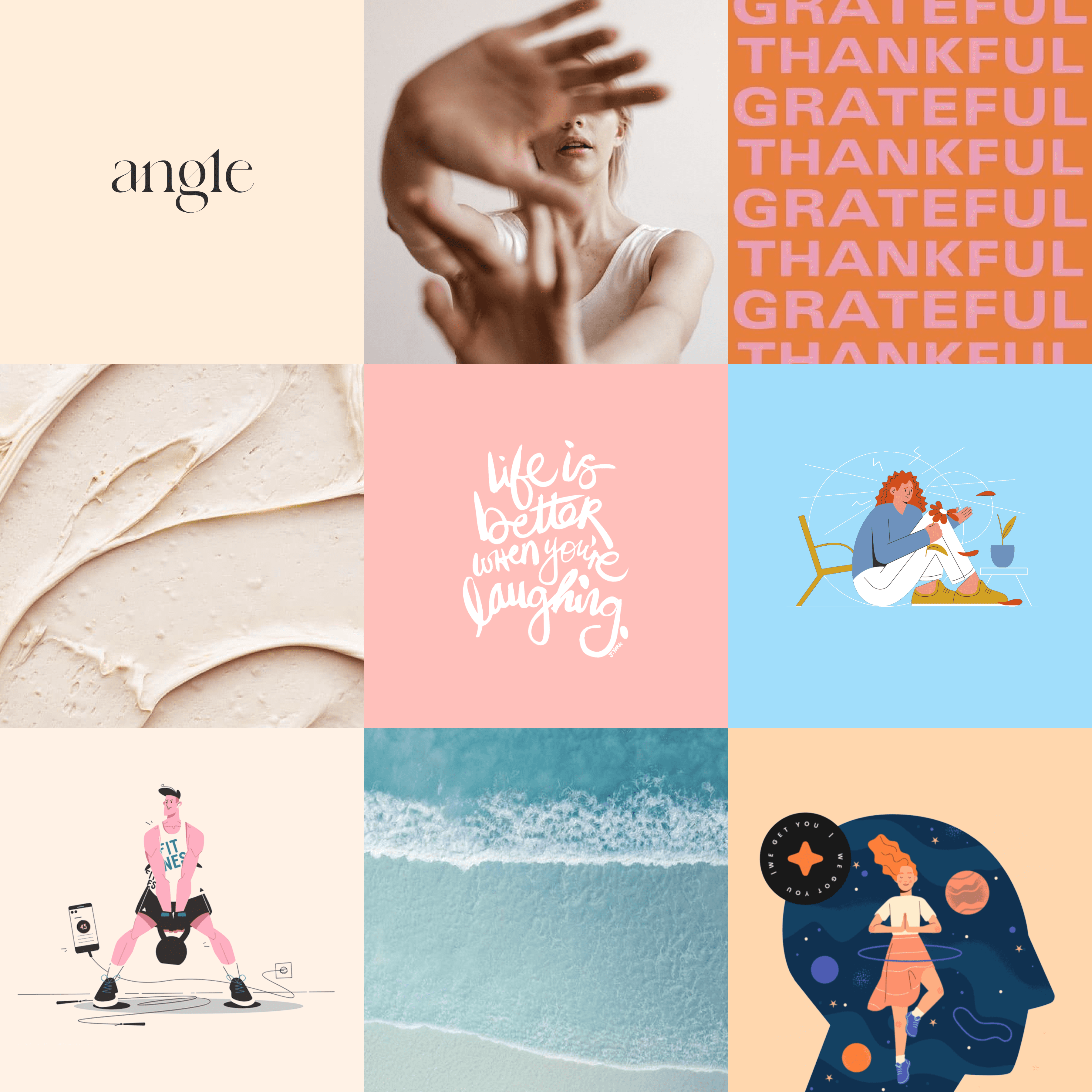 My first priority as the designer for Centre Self Collective began with the creation of their logo and brand identity. The first step was developing a moodboard that explored the visual identity of those in the mental health and wellbeing spaces. This exploration was all-encompassing, including traditional therapy clinics, as well as health offices, yoga studios and nutrition brands. I wanted to look at designs which appealed to young people, so conducted a lot of my research using Pinterest, Instagram and Dribbble.