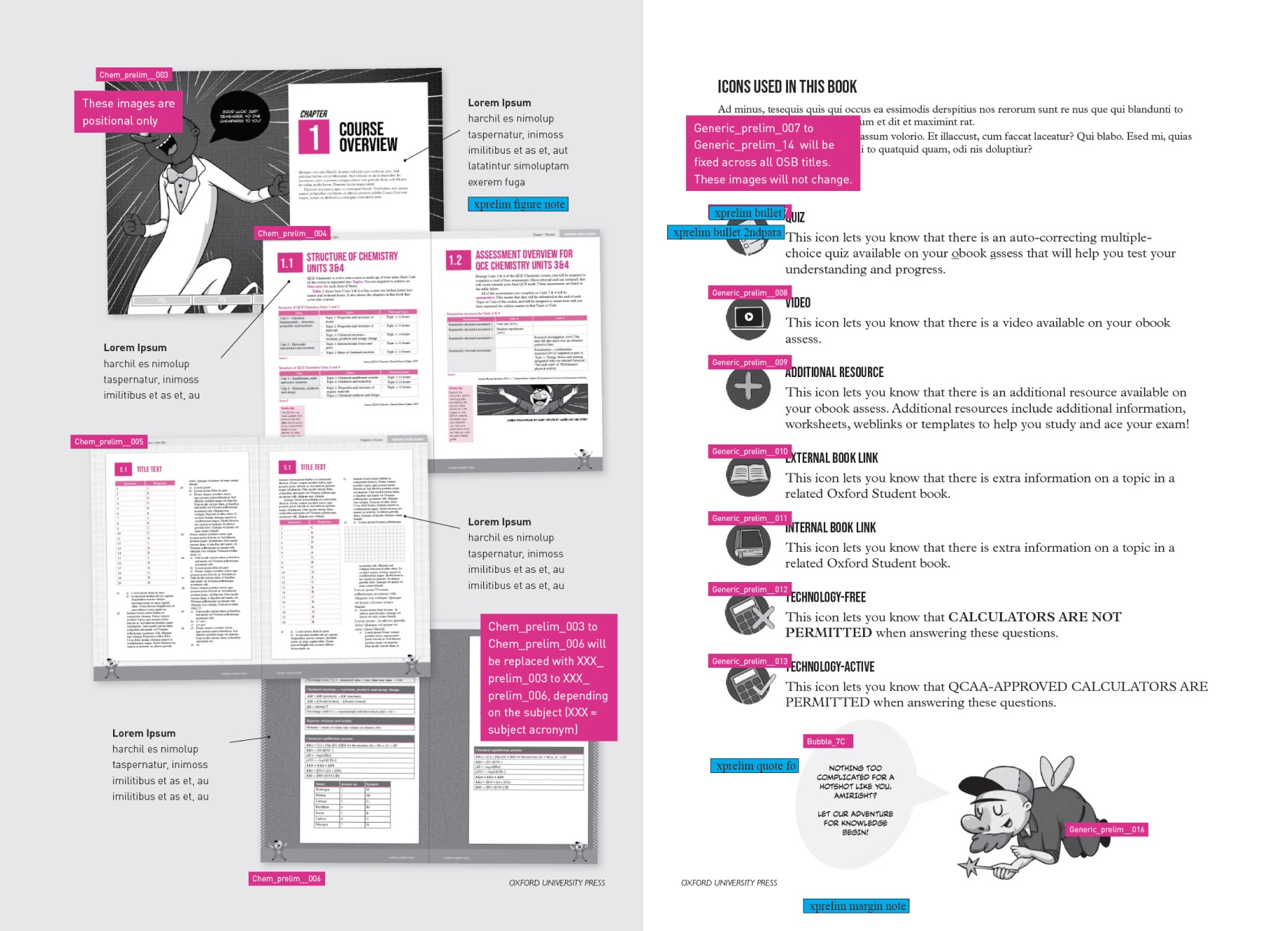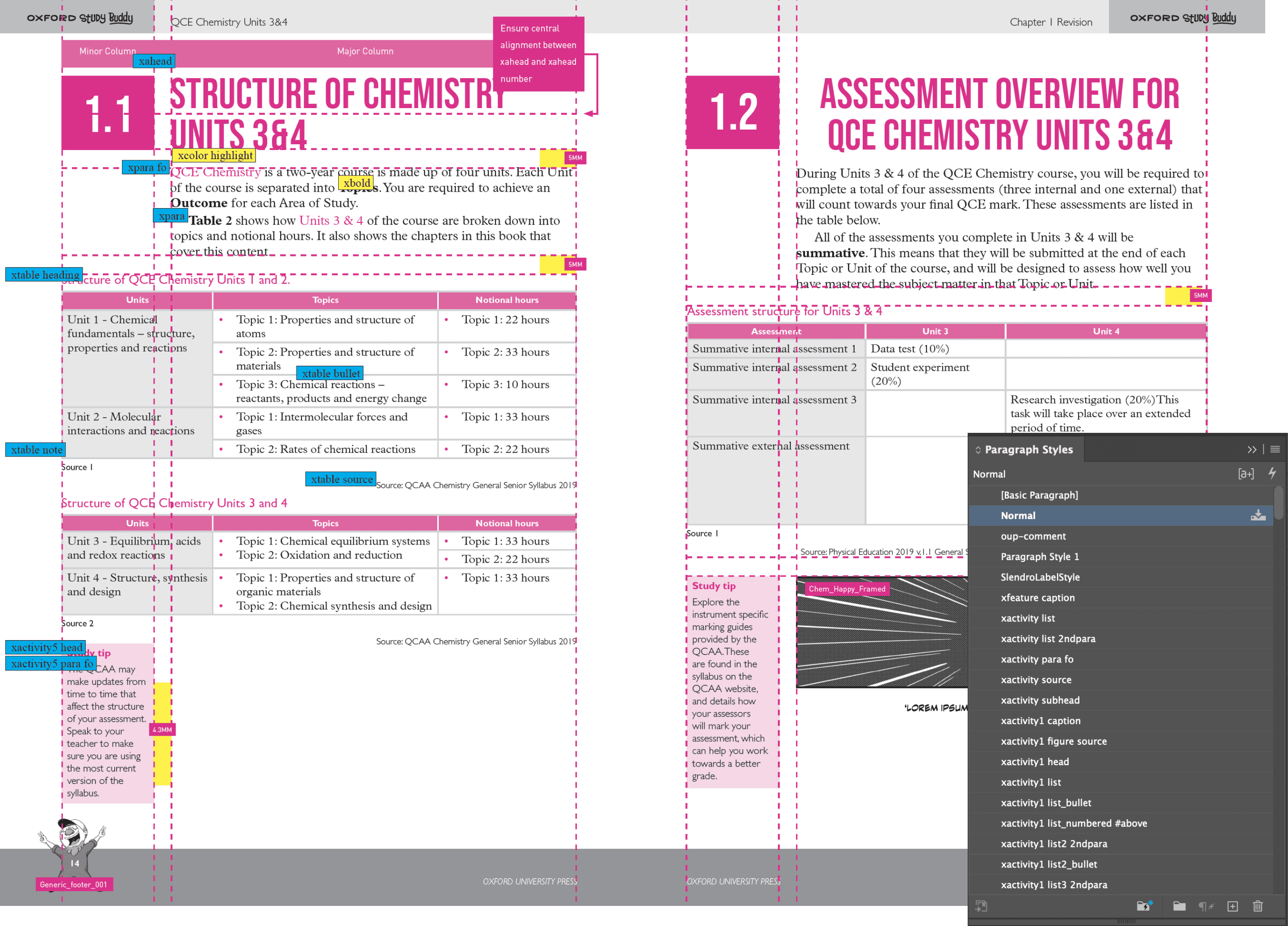 Due to budgetary constraints, Oxford Study Buddy would be given a one-colour print-run, which would heavily constrain the design choices. In addition to this, it would be laid-out by OUP’s typesetters using an automated system with minimal intervention from OUP’s in-house design team to rectify errors.