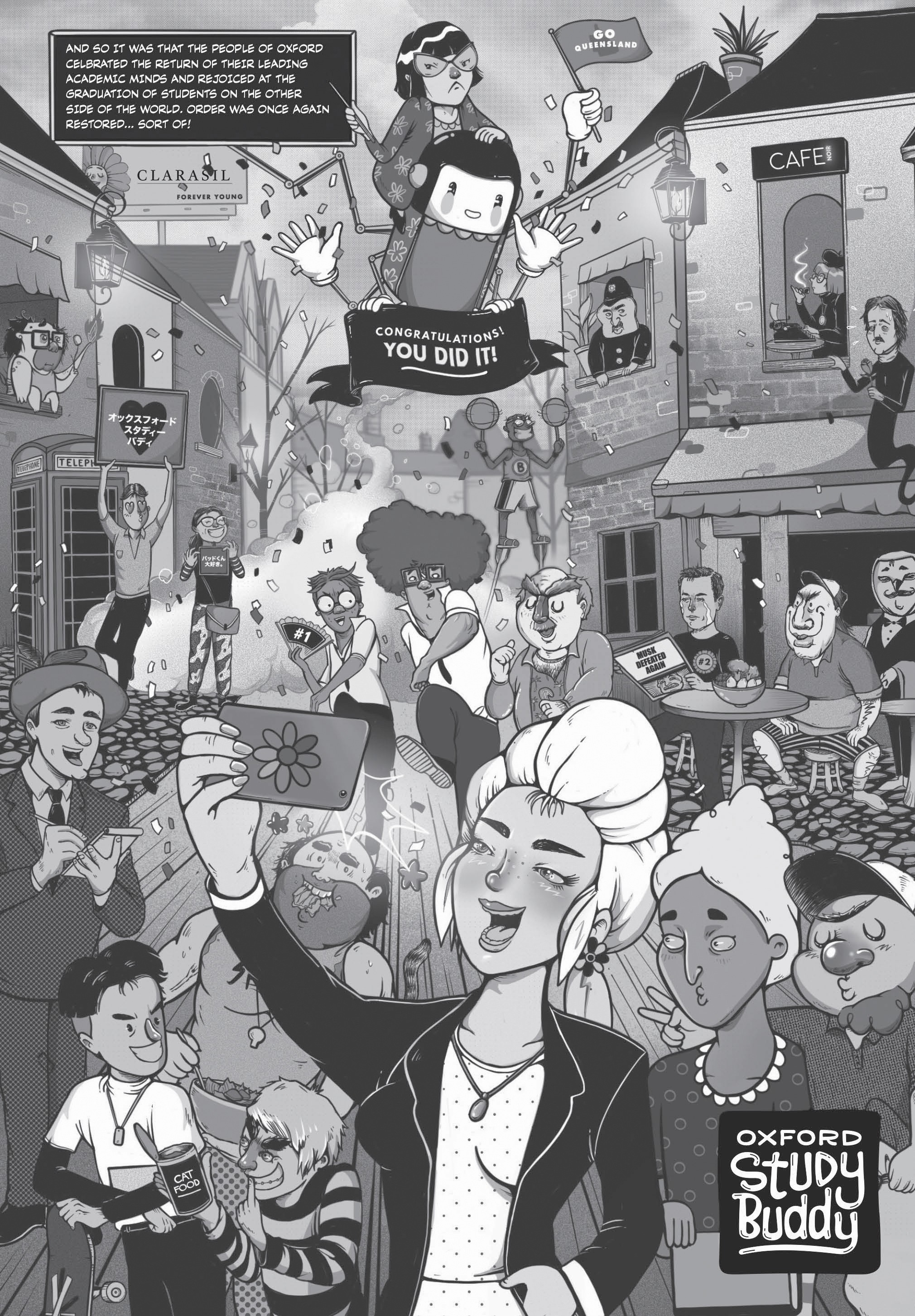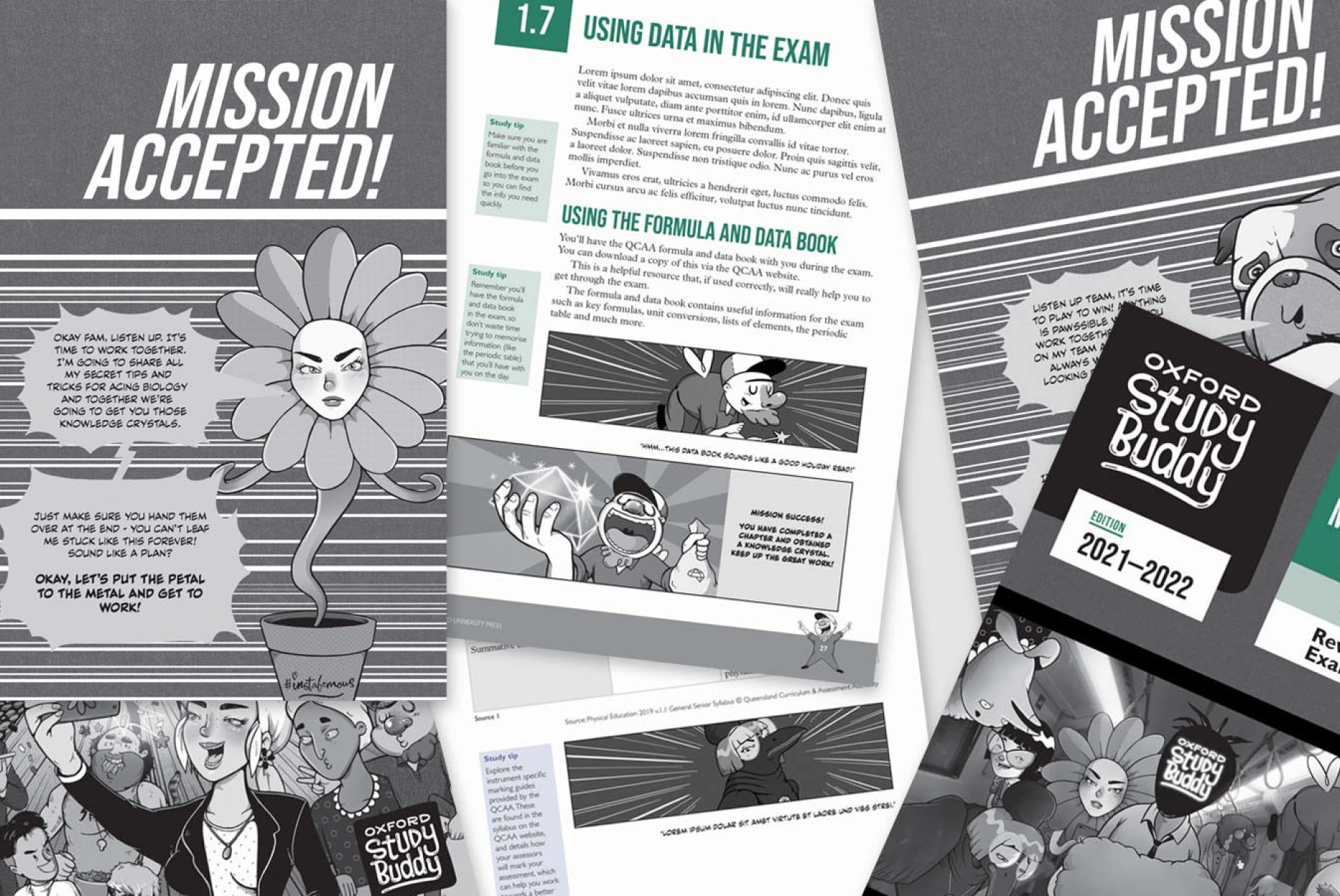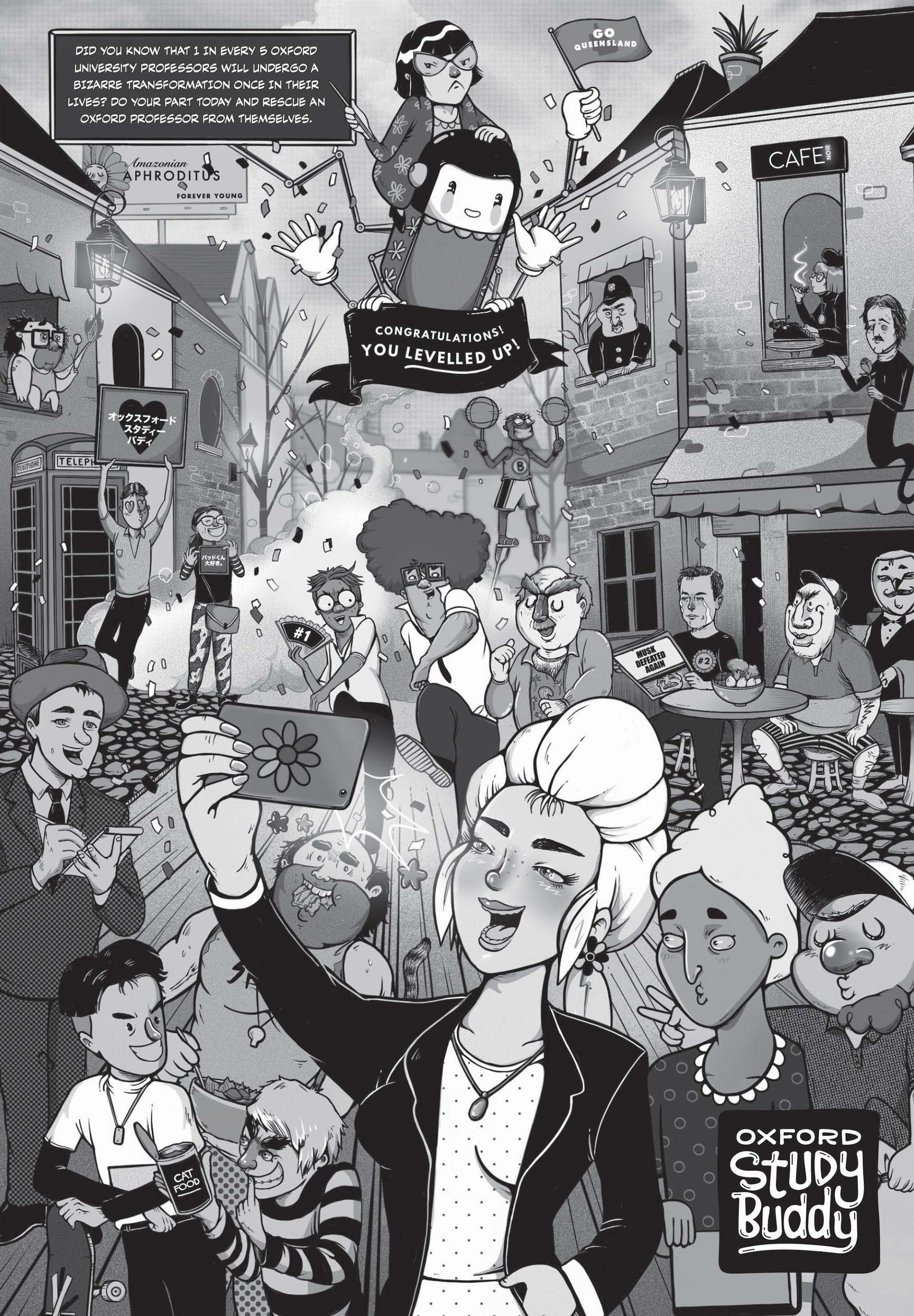 As an illustrator I created the entire universe of Oxford Study Buddy, including its unique characters, comic and splash pages as well as iconography. This artwork spans nine books with bespoke comic-pages created for each.