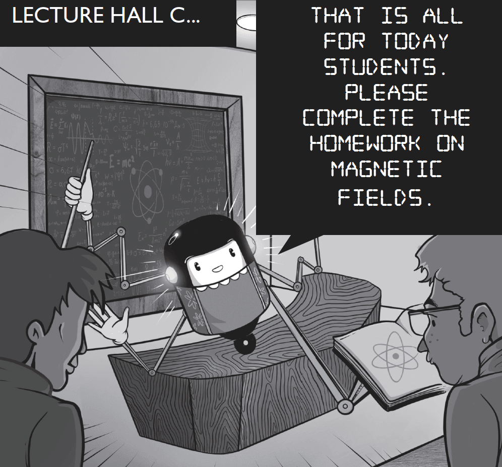 The graphic narrative we developed would feature an Oxford University professor undergoing an accidental transformation and needing the readers help to transform back. After completing chapters, readers are awarded crystals which are used to assist in this transformation. This narrative would be illustrated in the form of comic-pages, book-ending each volume.