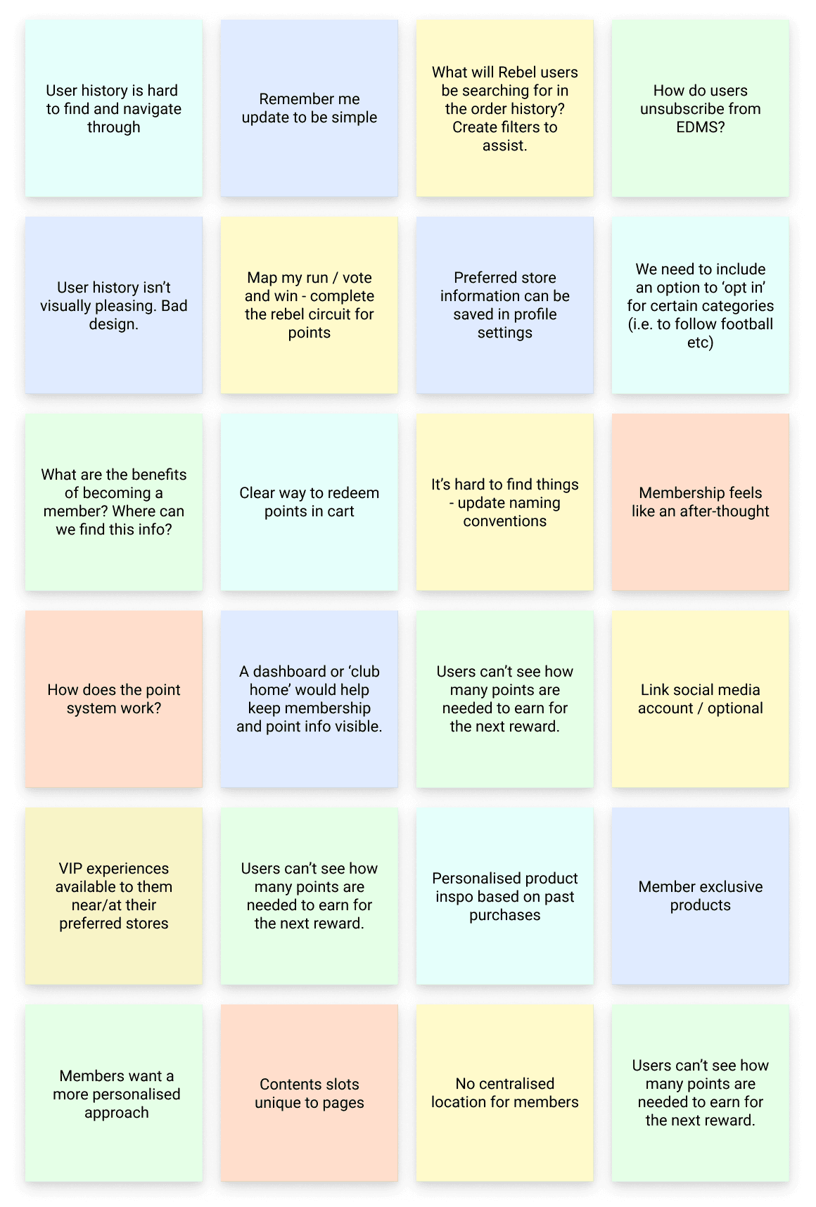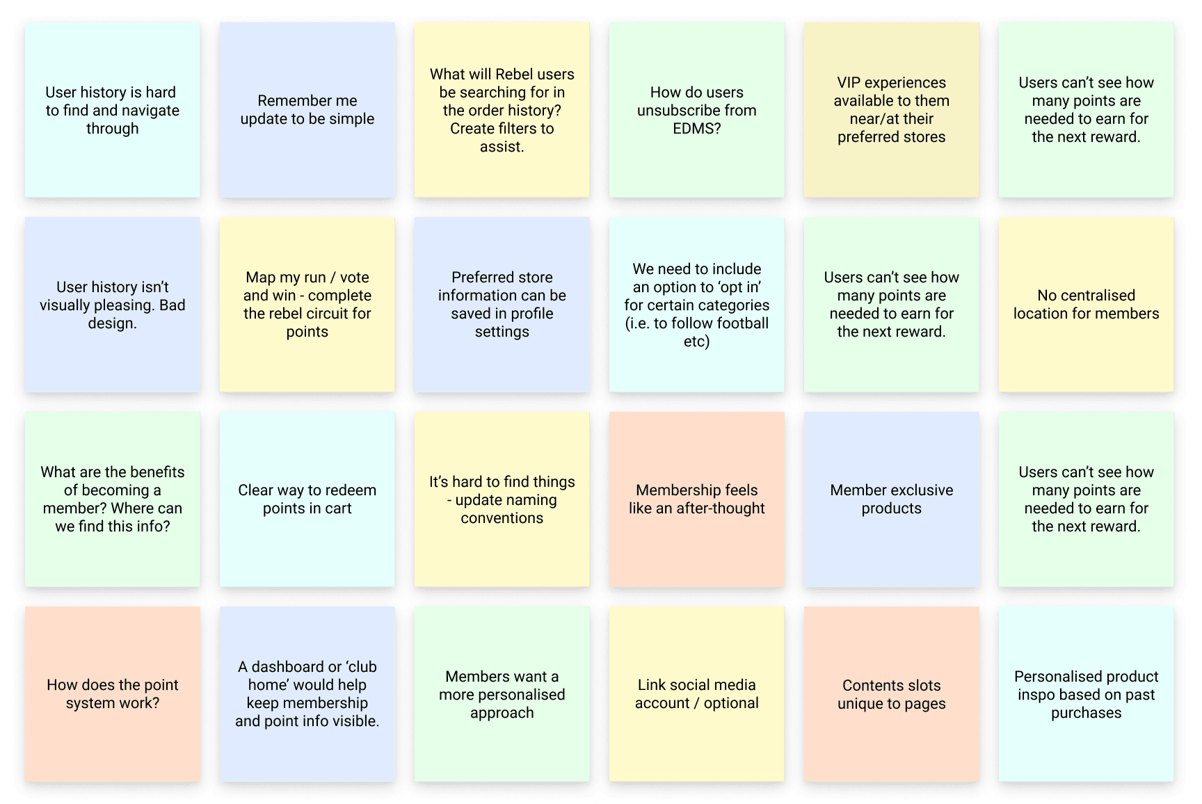 The information gathered from our team indicated that users were unhappy with most experiences related to membership. Accessing information felt disjointed, as if being a Rebel Active member was an after-thought and not an exclusive opportunity as they were lead to believe.