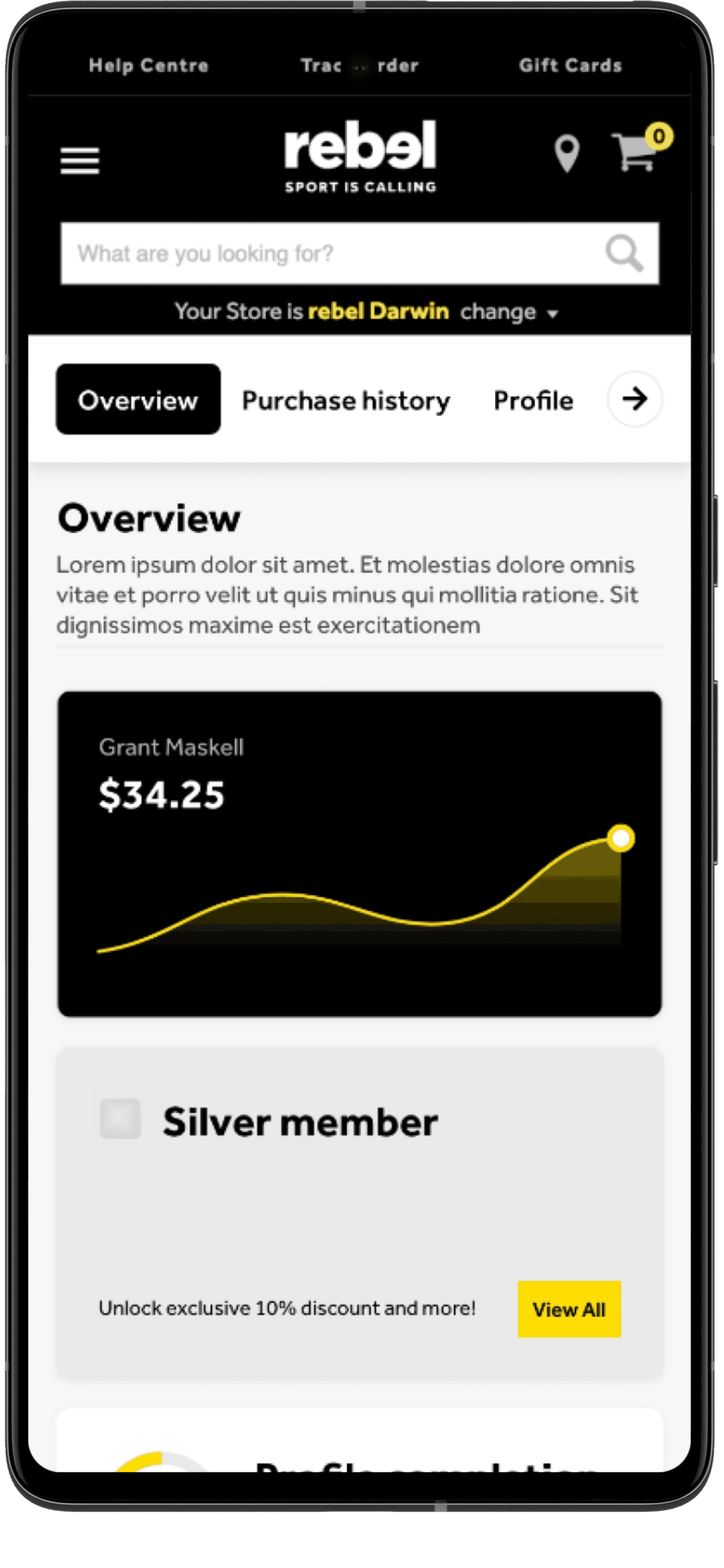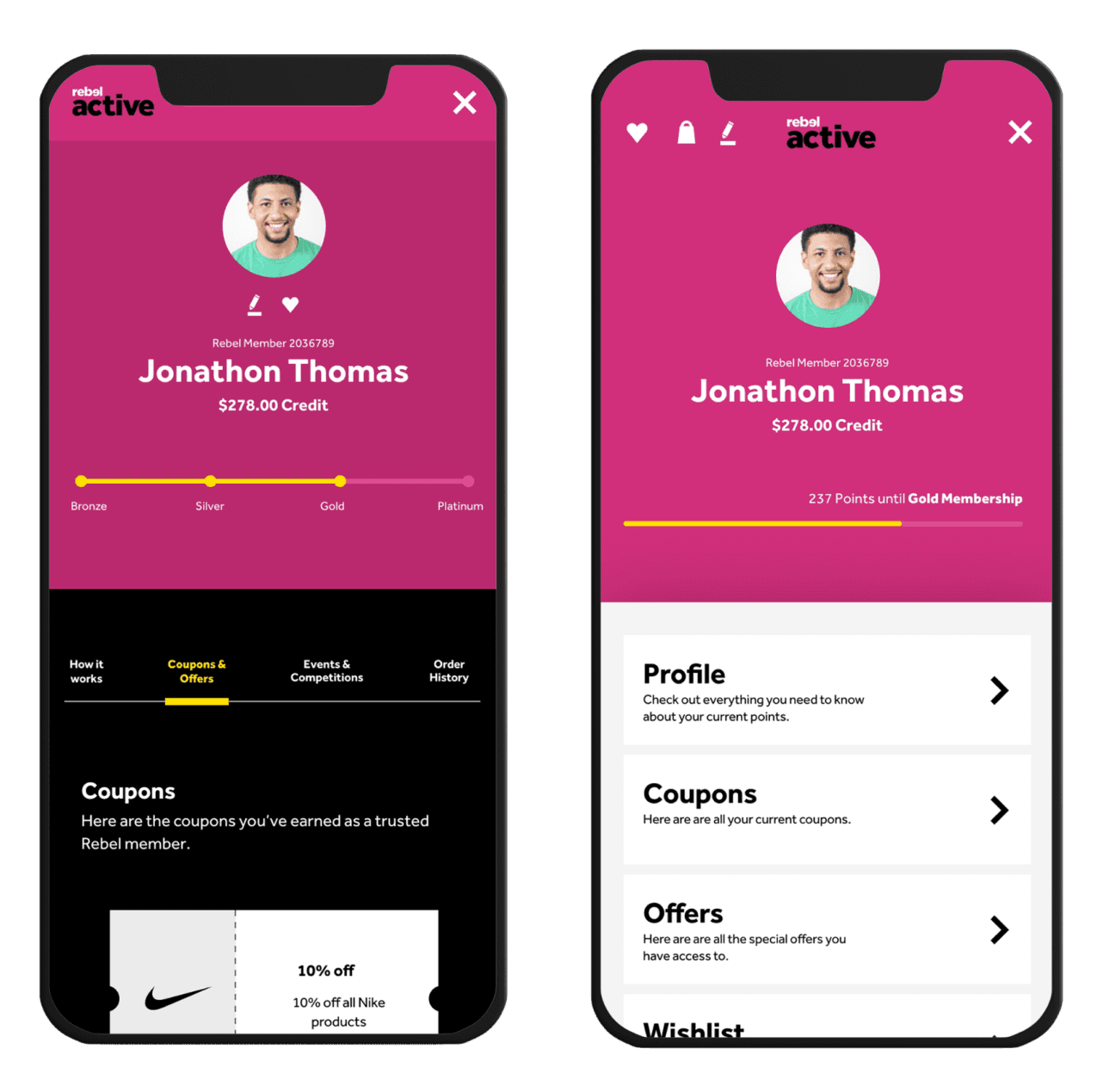 To start with, I included all the essential features such as the membership tier system, Rebel Active memberships, and profile information. This allowed users to quickly access their membership status, personal details, and other critical information in one central location.
